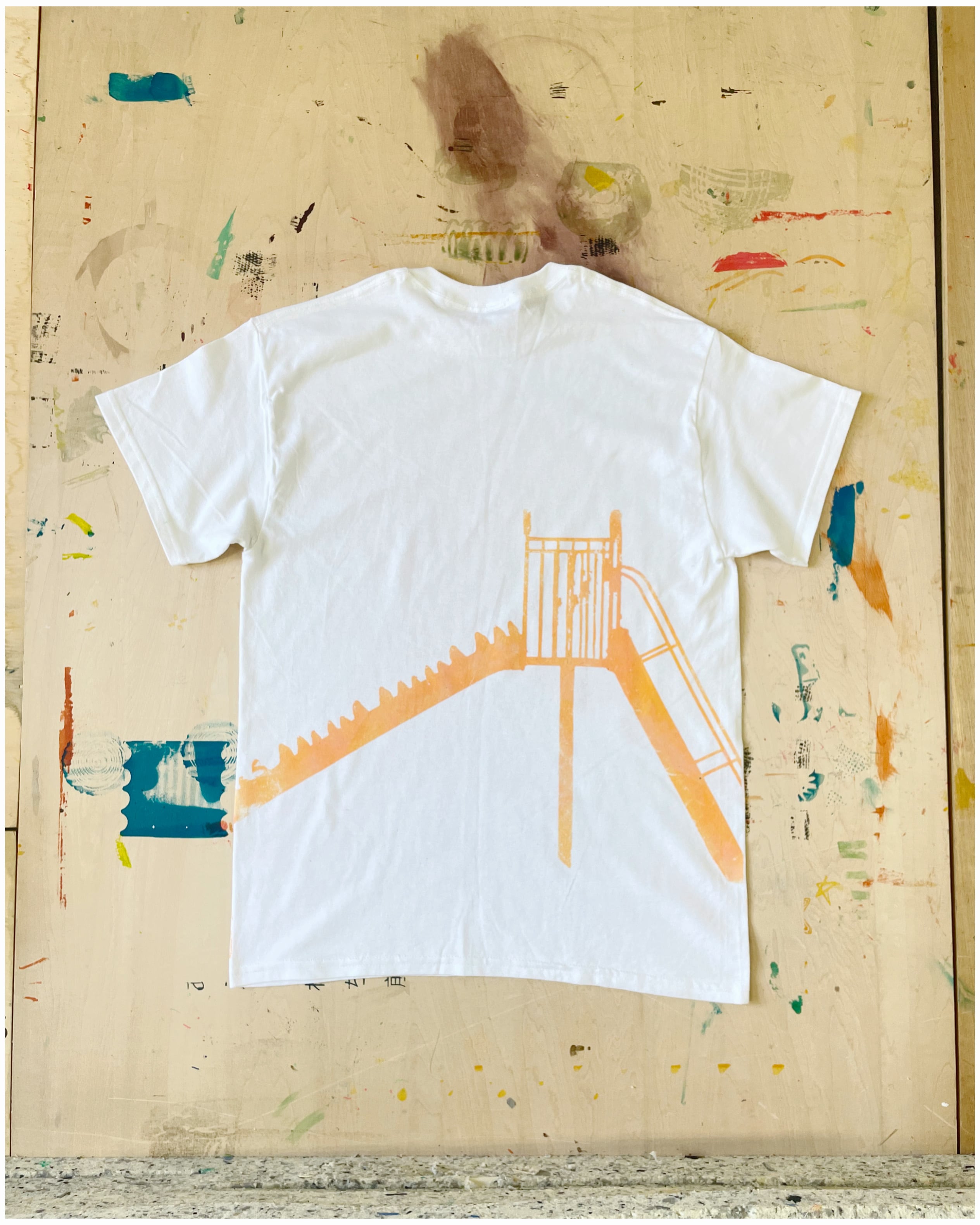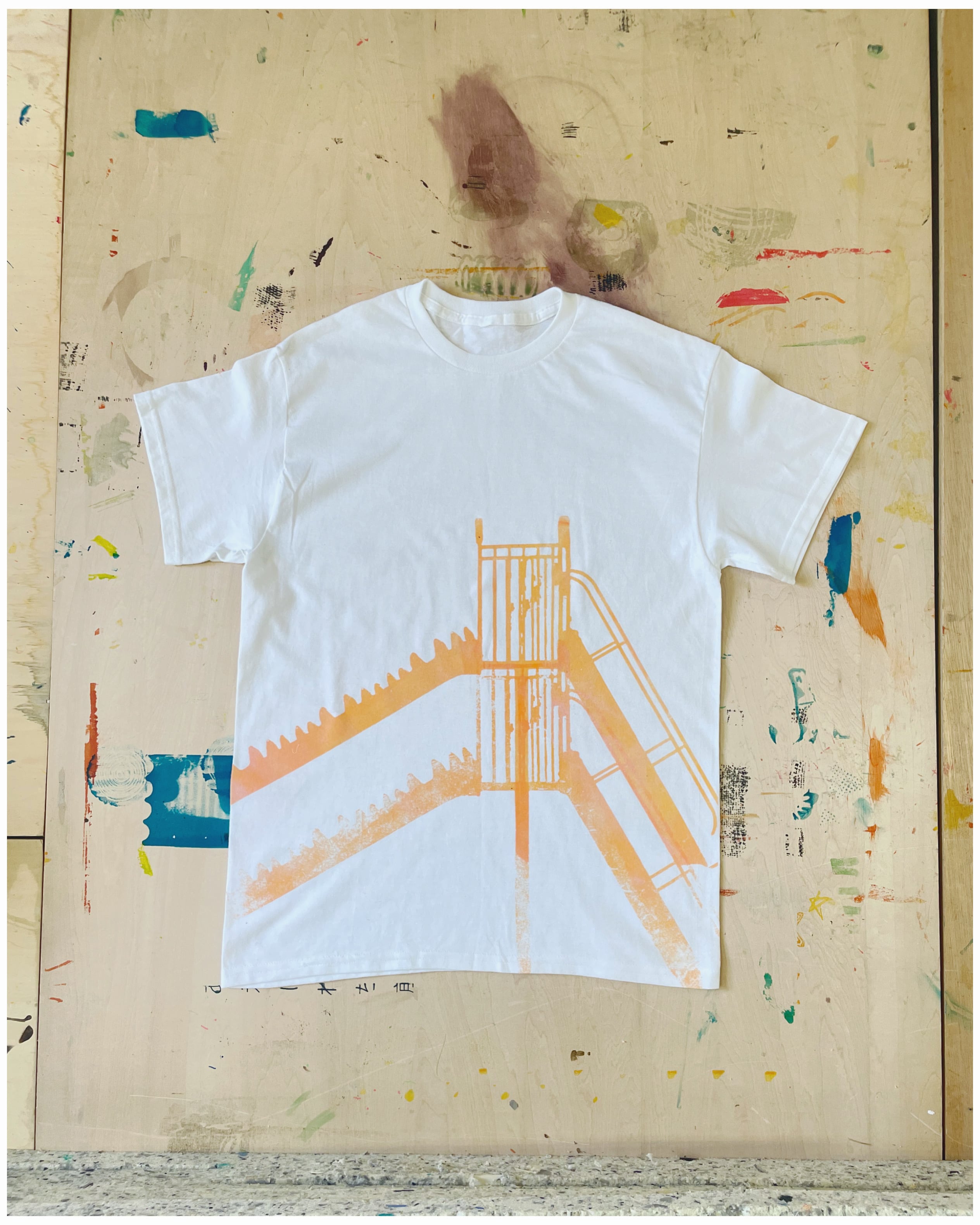 滑り台のようなオブジェクトがフロッキープリントされています